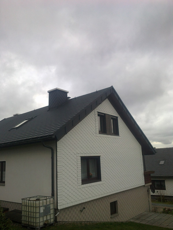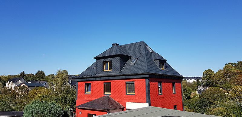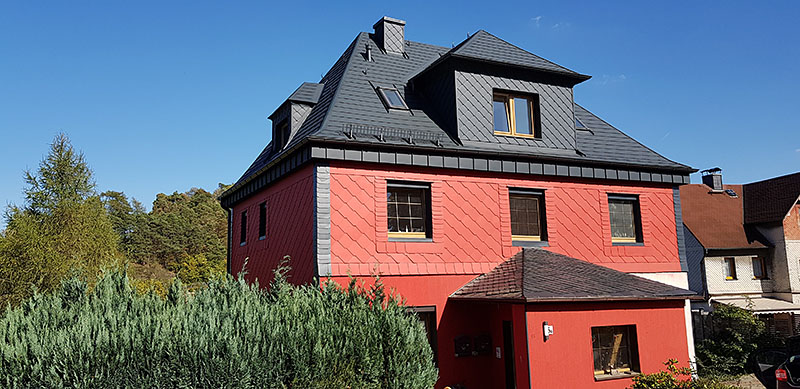 eines Wohnhauses in Bad Lobenstein mit Prefa Dachschindeln in Farbe anthrazit
