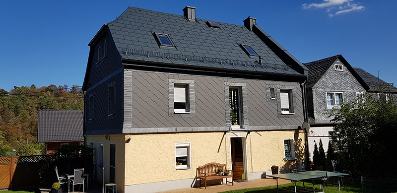 eines Wohnhauses in Bad Lobenstein mit Prefa Dachplatte in Farbe anthrazit